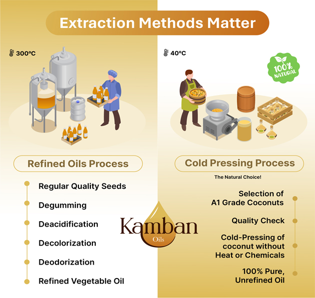 Using the ancient method of cold pressing, we gently extract oil without applying any heat or chemicals. This process maintains the integrity of the oil, preserving its vitamins, minerals, antioxidants, and original flavor. Cold press extraction ensures that the oil retains its raw, natural goodness — making it ideal for cooking and therapeutic uses.